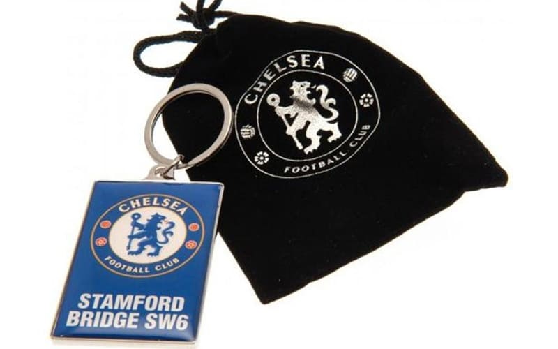 Portachiavi Chelsea FC a forma di stadio Stamford Bridge. Piccolo ma elegante accessorio per i veri Blues. Metallo resistente, design