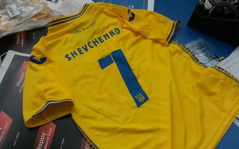 Maglietta della nazionale ucraina con il nome del leggendario Andriy Shevchenko e il numero 7. Sostieni la nazionale con orgoglio!